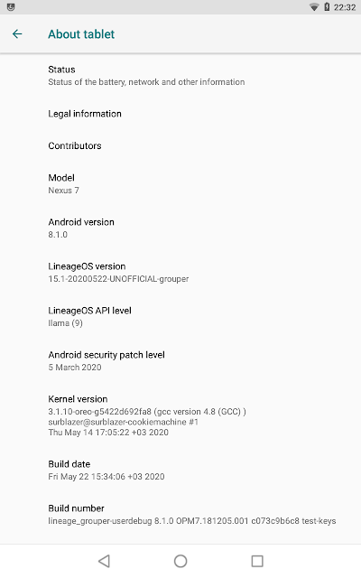 - Read [ROM][grouper] [8.1.0] [UNOFFICIAL] LineageOS 15.1 [2020/05/22]