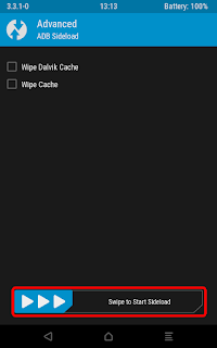 - Back to TWRP main screen > Advanced > ADB Sideload > Swipe to Start Sideload